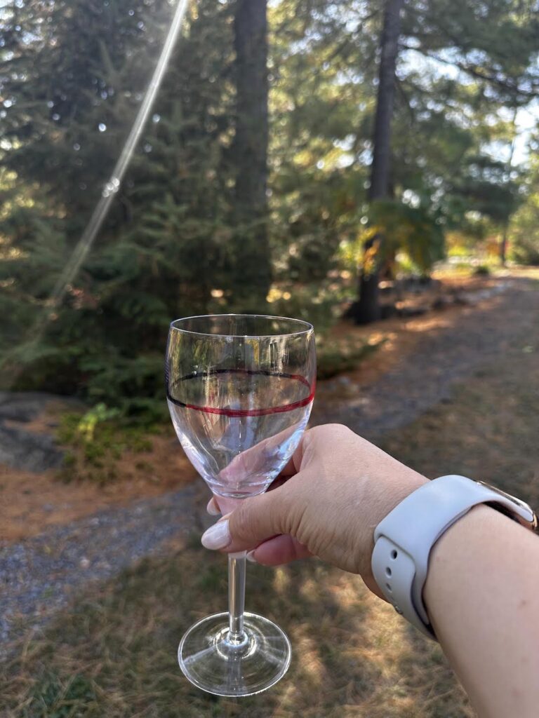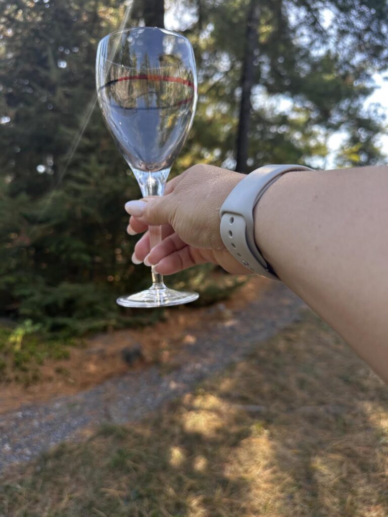 To demonstrate, I filled a glass and marked the water line on the inside using two markers (red and black) so it’s easier to see.