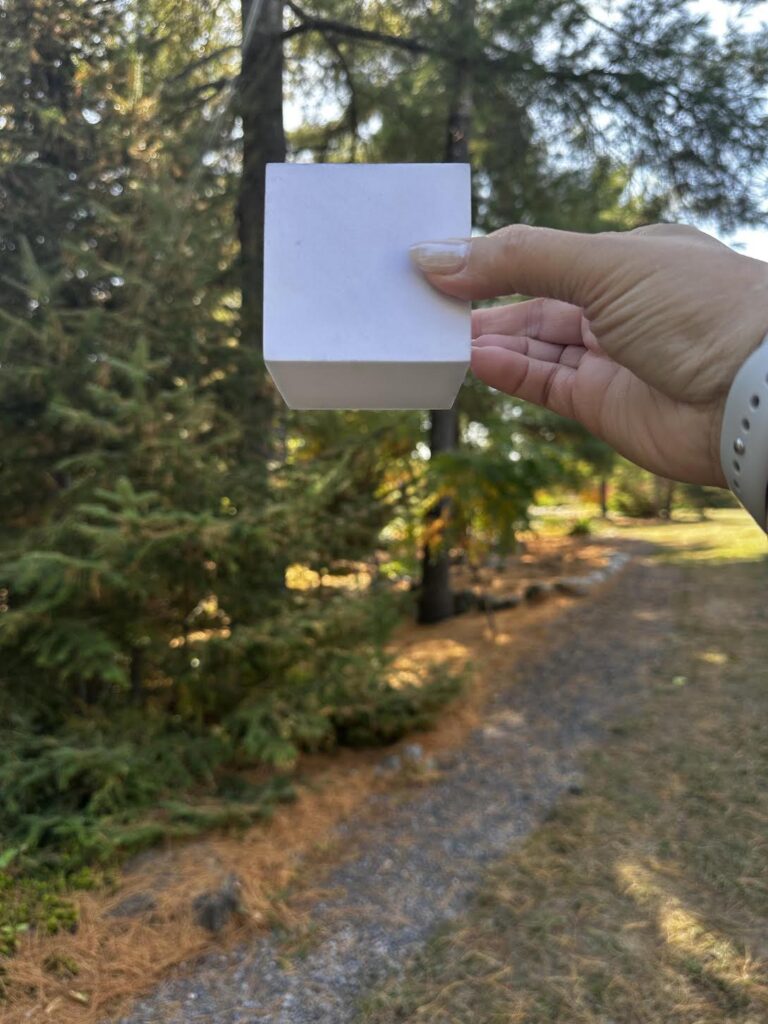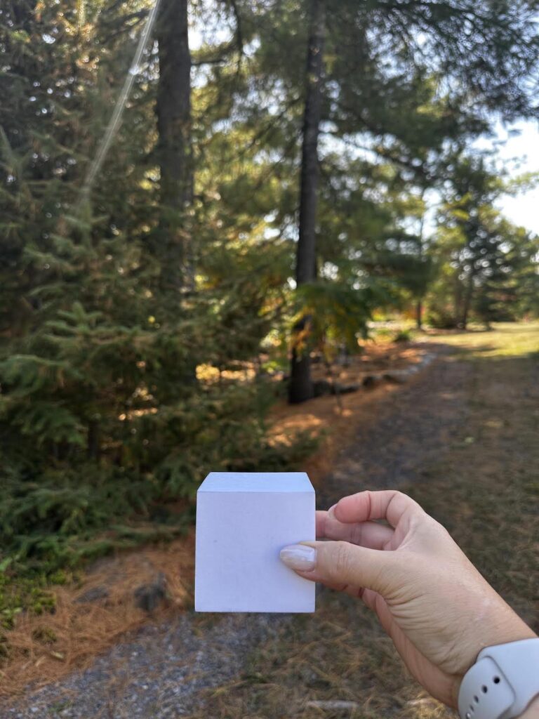 For the next visual exercise, you’ll need a square box, I’m using a simple cube from a geometry learning set.