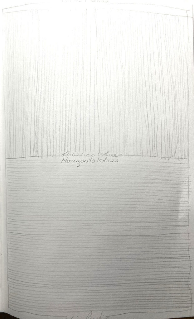 The line in the middle of the page represents the horizon line.