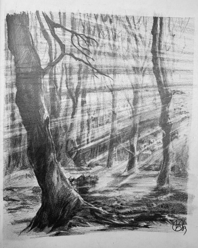 A mystical branching form that helps you learn how to separate dozens of intertwined branches using tonal hierarchy. You’ll master how to avoid visual “confusion” and create a layered, atmospheric composition.