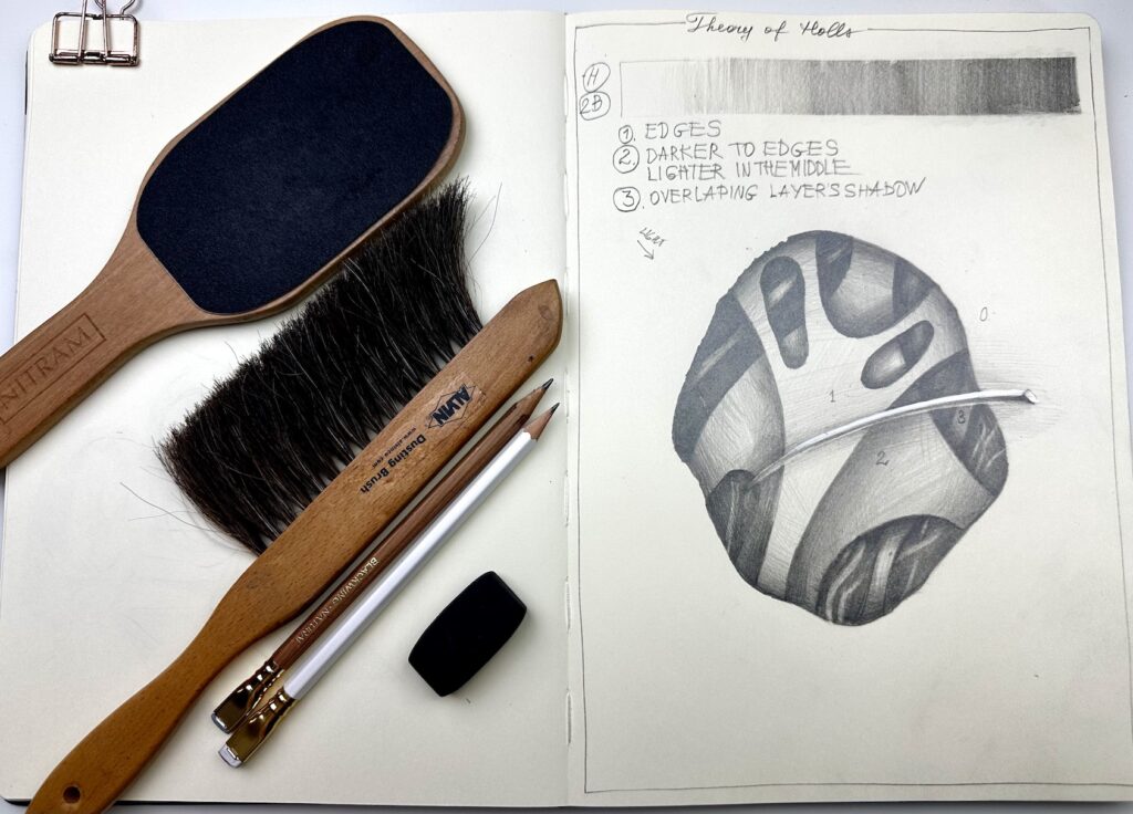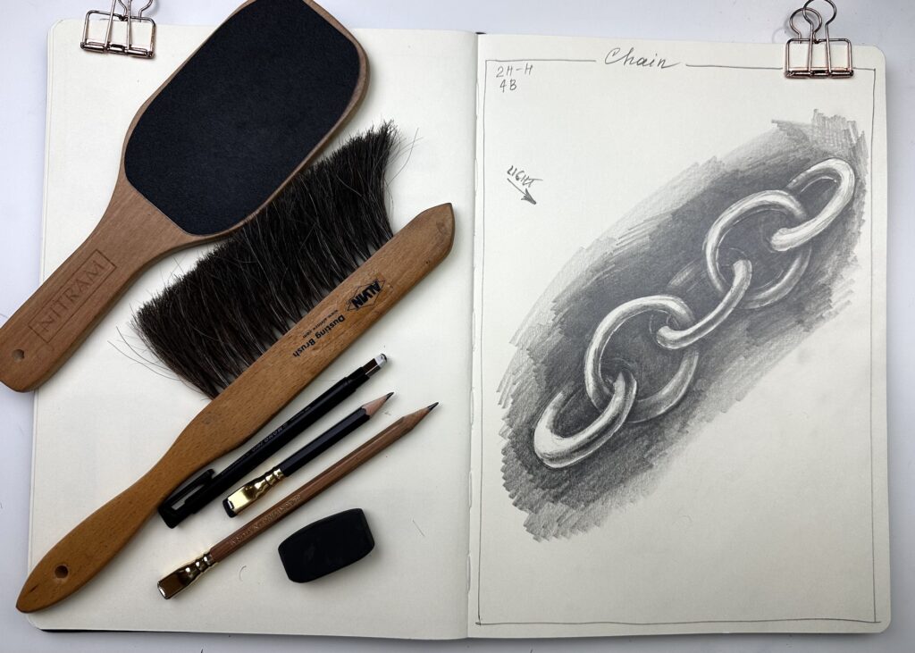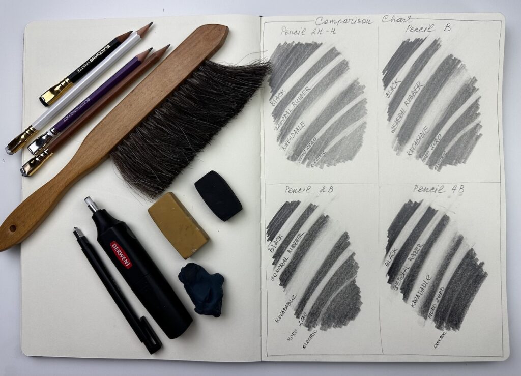 A practical comparison of all your erasers to evaluate their performance with the pencils you use most often: H, B, 2B, and 4B. This exercise helps you understand which eraser works best for lifting graphite cleanly, creating highlights, and refining details across different softness levels of pencil.